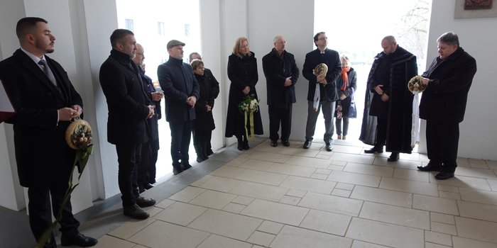 A protestáns gályarabok szabadulásának 350. évfordulójára emlékeztek a Sárospataki Református Kollégium bejáratánál található, a gályarabokat ábrázoló relief előtt 2026. február 11-én.