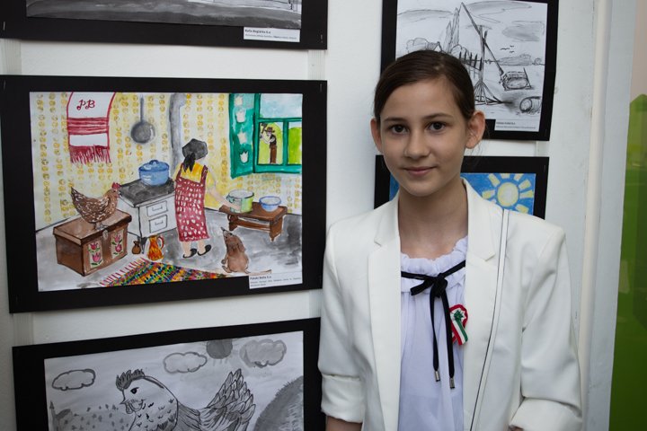 – Az én rajzom egy kicsit morbid. A magyar zászlóval betakart nő, akit a Dunában látunk, halott. Rajta tiszavirágok vannak. Mögötte a magyar Parlament látható. Az idő borús. A képpel a 1848/49-es forradalom és szabadságharc bukását akartam ábrázolni – mutatta be különdíjjal jutalmazott pasztellkrétával készített rajzát Tóth Gréta, az Irinyi János Református Oktatási Központ Tompa Mihály Általános Iskola 7. osztályos tanulója.