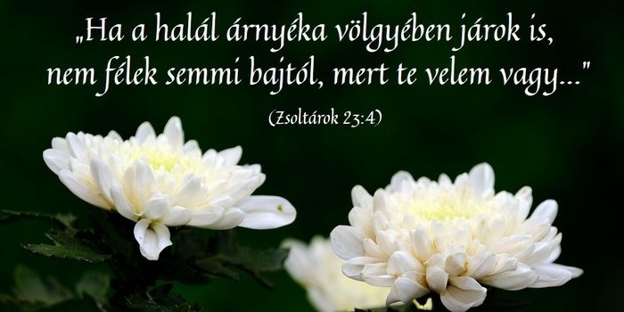 Dávid zsoltárának szavai ezekben a napokban különösen mélyen szólnak hozzánk. A halál árnyékának völgye – milyen találó kép! Nem maga a halál, hanem annak árnyéka. Mert ahol árnyék van, ott fénynek is lennie kell. Nem azt mondja: „majd túl leszek ezen", vagy „idővel elmúlik a fájdalom", hanem azt: Te velem vagy. A jó Pásztor nem hagyja magára nyáját a völgyben sem. Te, Istenem, velem vagy. Nem értem, hogy életemben miért úgy történnek dolgok, ahogy történnek, de jó, hogy Te velem vagy. Jó, hogy végig fogod a kezem. Jó, hogy átölelsz. Jó, hogy vigasztalsz, a bajban erőt adsz, és jó, hogy most is megújítod a lelkem. Mert eszembe juttatod Jézus szavát: „Nem hagylak titeket árván.” Általa lehetnek ezek a napok szépek, méltósággal, tisztelettel és szeretettel teljesek. Lehetnek ezek a napok a megértéstől, a hittől, az Istenre találástól világosak. Sötétségben élve, sírhantok mellett állva, Isten nekünk is a feltámadt Krisztusban világosságot gyújt szívünkben, hogy Benne bízzunk. Hogy ne csak a szenvedést lássuk, ne csak a hiányt érezzük, hanem tudatosuljon bennünk az, bármennyire is fájdalmas, hogy ez az élet változó, sokszor a halállal is szembesülő, de ebben a változásban, a halál árnyékában is Ő, a legnagyobb Világosság, velünk van.