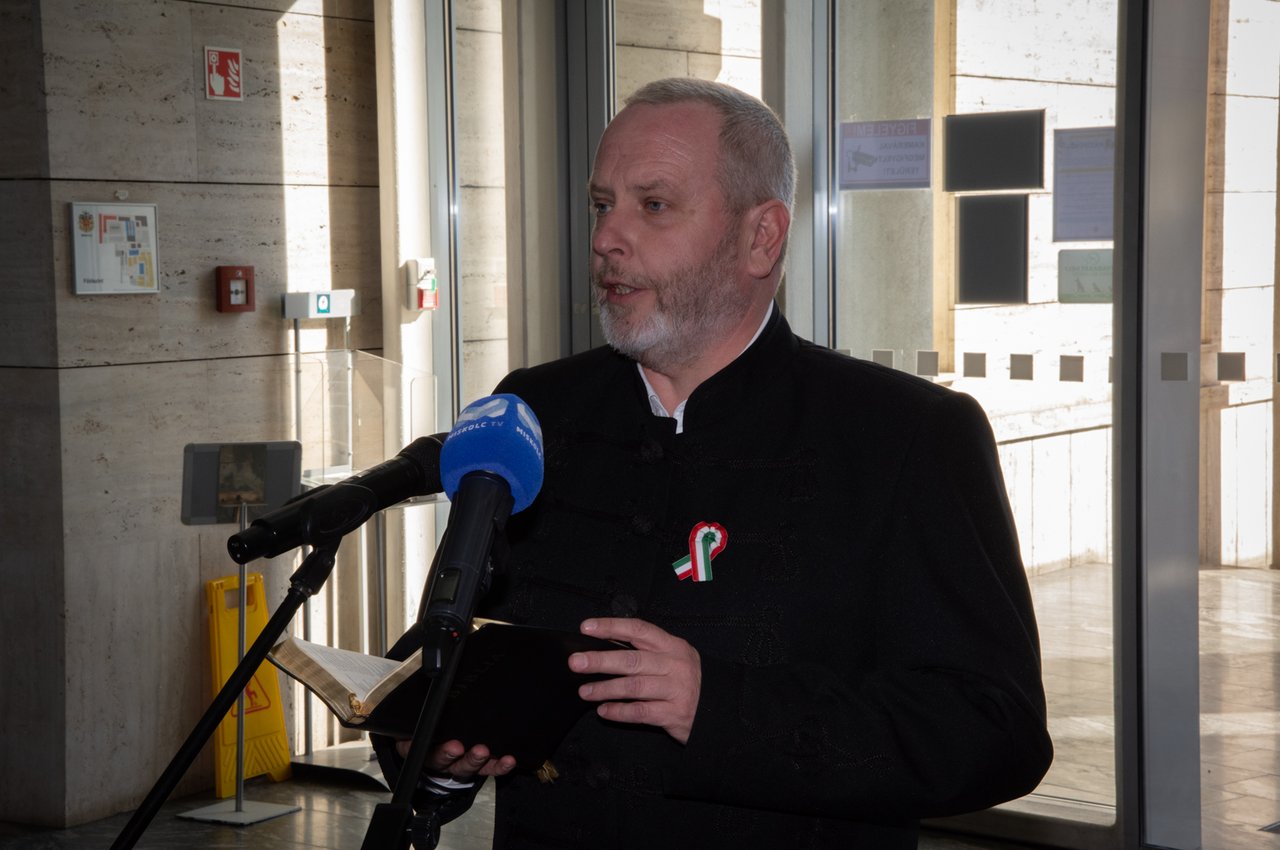 Az 1848/49-es forradalom és szabadságharc szellemiségéhez kapcsolódó rajzpályázat és kiállítás egyben díjátadó ünnepség is volt, amelyet Kolumbán Gábor áhítattal nyitott meg. A Tiszáninneni Református Egyházkerület püspökhelyettese a 104. zsoltár szerint leírt Teremtő és megtartó Istenről beszélt rávilágítva arra, hogy milyen jó dolgunk van azért, mert szerető Istenünk csodálatos földi javakkal ajándékozott meg bennünket, és amelyeket a zsoltáros részletesen a szemünk elé tár, a gyerekek alkotásain keresztül pedig visszaköszönnek.